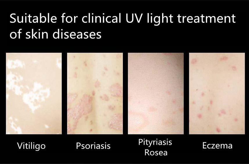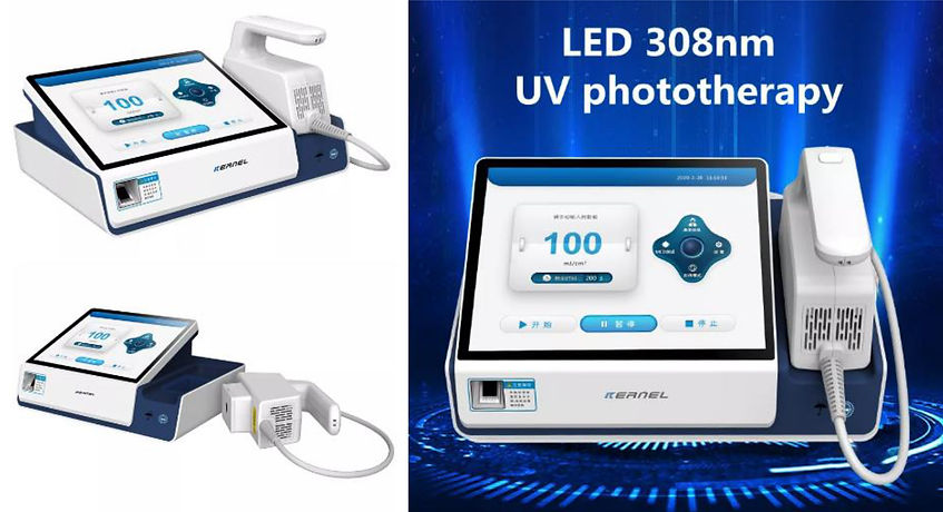 Clinically proven that LED 308nm UVB make the treatment of vitiligo as fast and effectively as with an excimer system. Its smaller size and lower weight, and easy to use, make it more flexible than excimer laser.