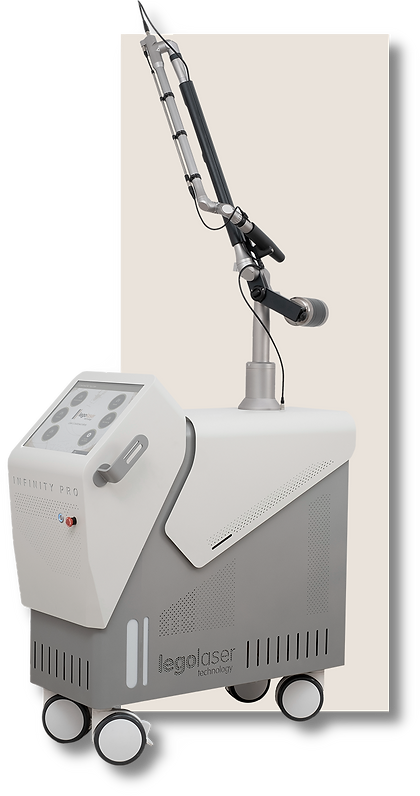 Q-Switched Nd: Yag Infinity Pro dual wavelength (1064 nm and 532 nm) is a Q-switched laser mainly used for pigment treatments as well as tattoo removal, peeling or bleaching among others, featured by providing high energy in a very short time (6 nanoseconds).